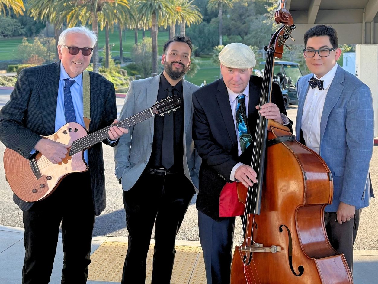 Vintage Noise plays jazz and bossa nova from the Sinatra–Jobim era — quiet, swinging, and built for the moment. Hear us live or book us for yours.